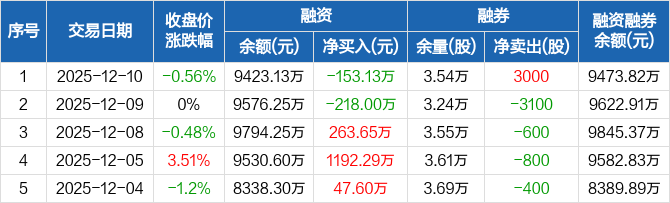顺控发展:融资净偿还153.13万元,融资余额9423.13万元(12-10)