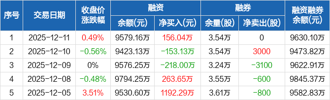 顺控发展:融资净买入156.04万元,融资余额9579.16万元(12-11)