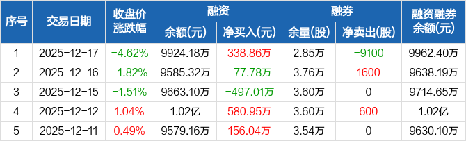 顺控发展:融资净买入338.86万元,融资余额9924.18万元(12-17)