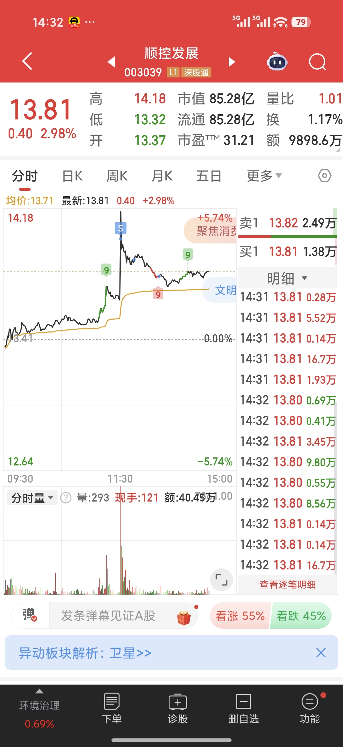 $顺控发展(SZ003039)$ T一笔出来,成本12.8元还有4万股
