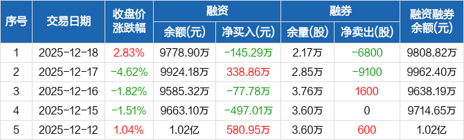 顺控发展:融资净偿还145.29万元,融资余额9778.9万元(12-18)