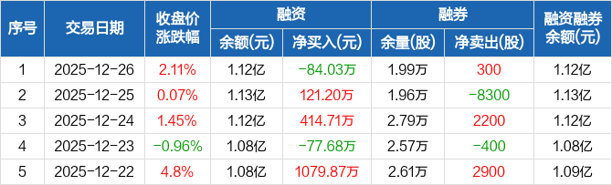顺控发展:融资净偿还84.03万元,融资余额1.12亿元(12-26)