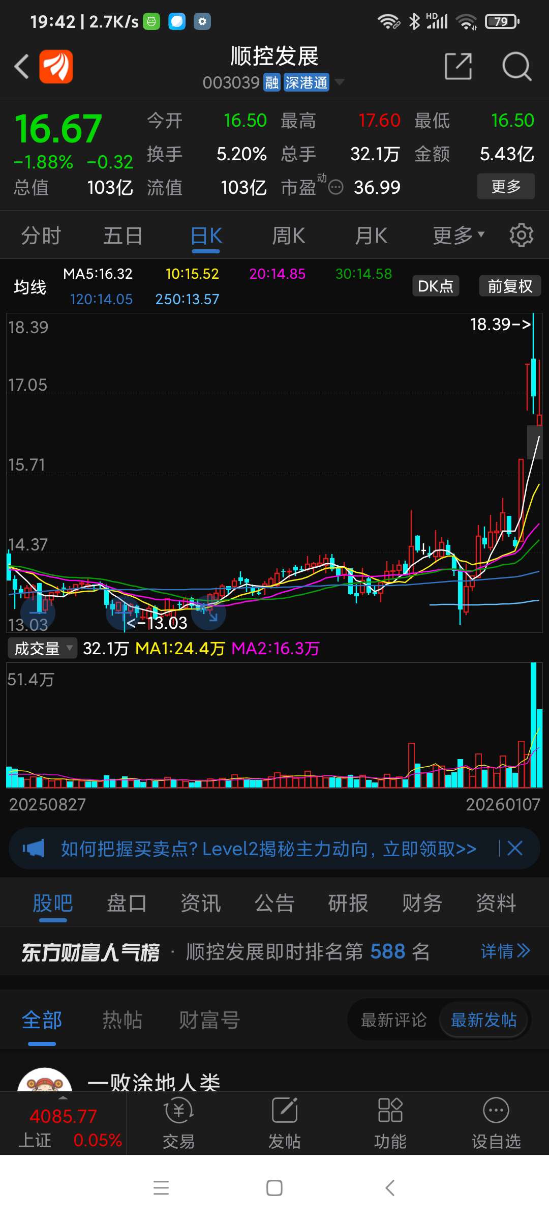 顺控发展,今日走势庄家高抛低吸,主力仍在。