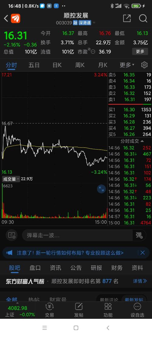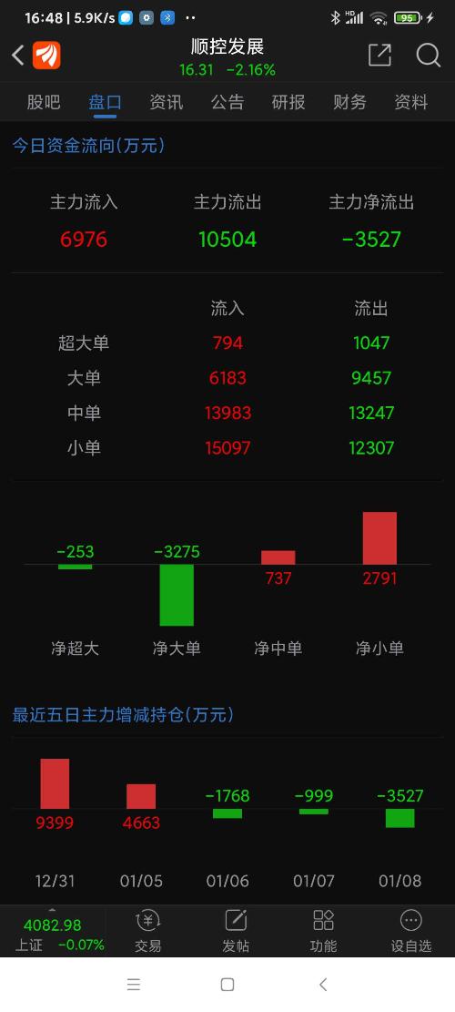 顺控发展今日走势……被套中。