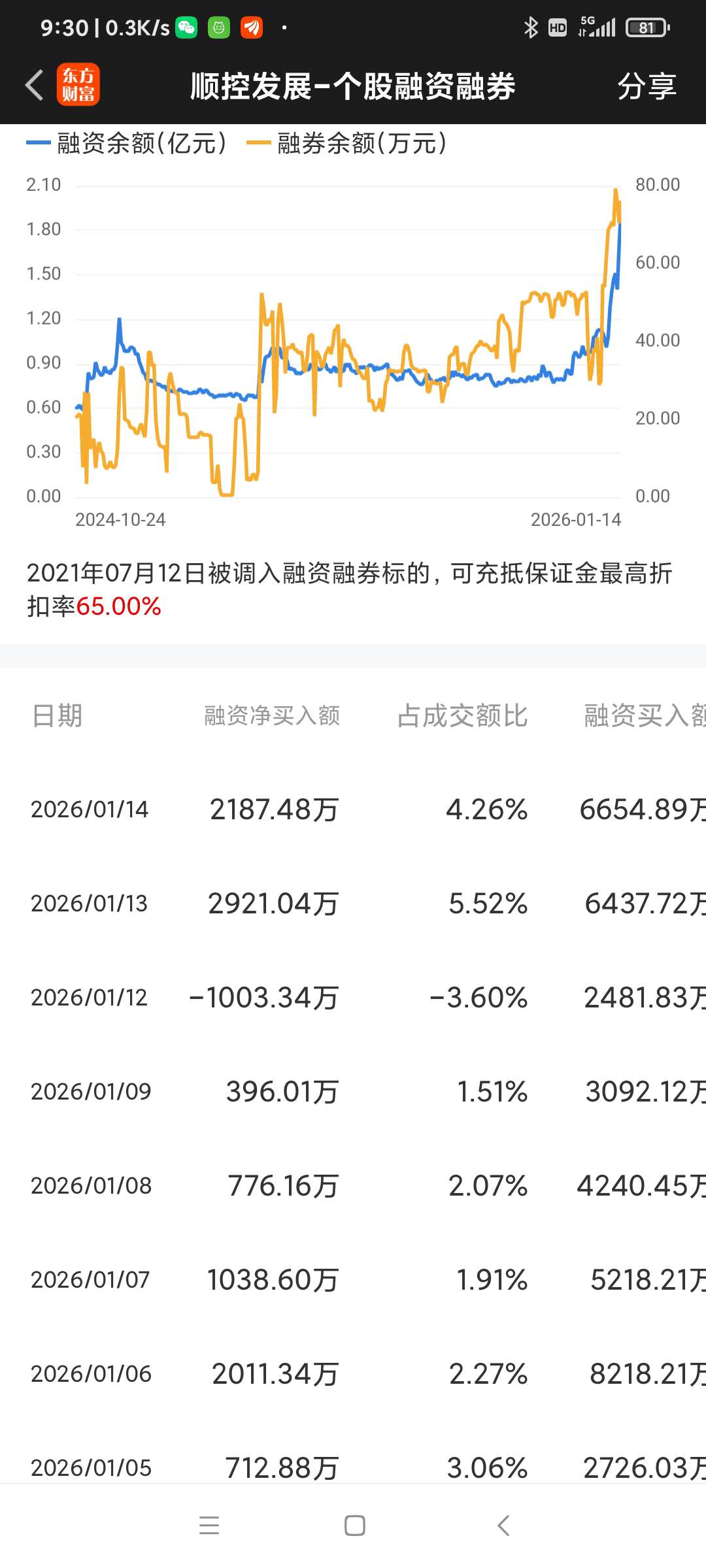 顺控发展,昨日融资净买入很大。