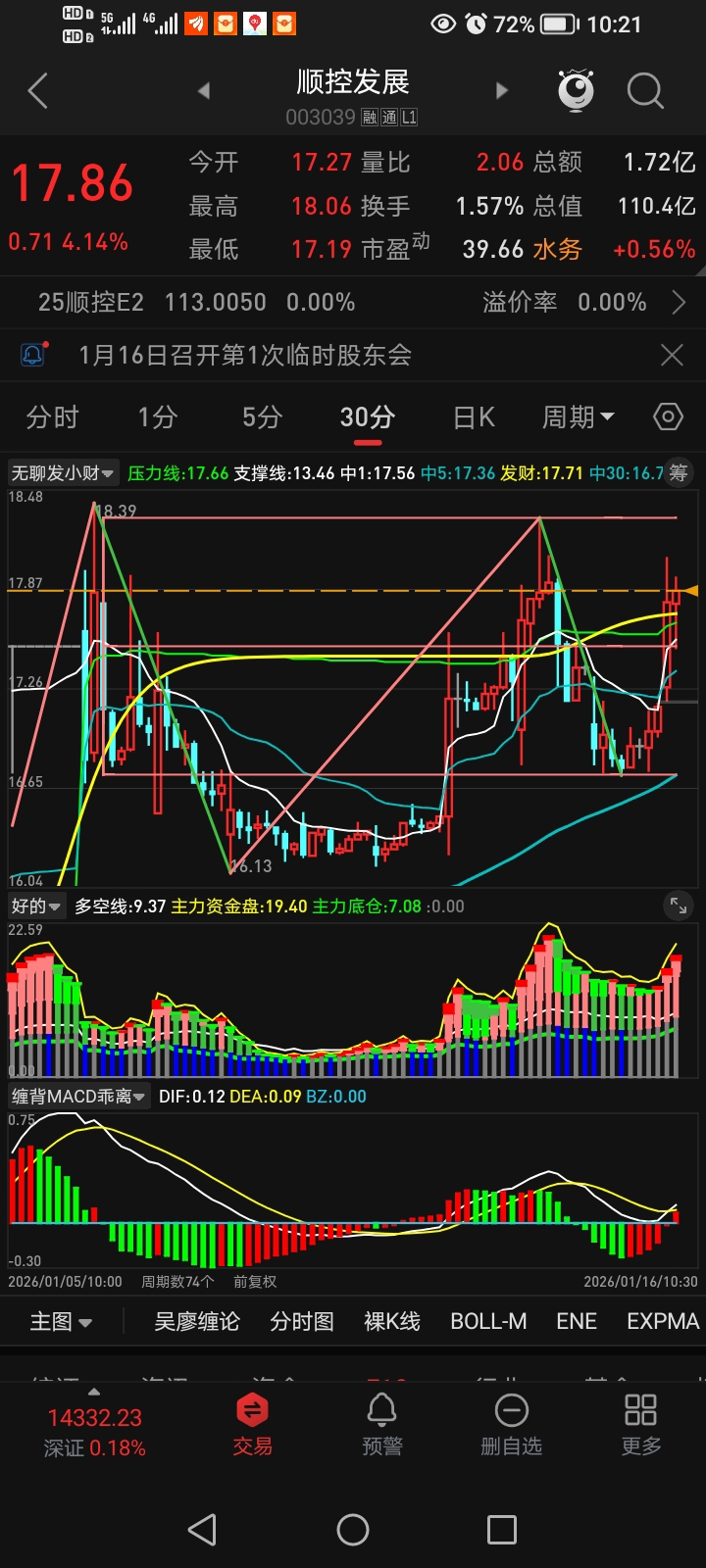 $顺控发展(SZ003039)$ 顺控今天会过前高18.39