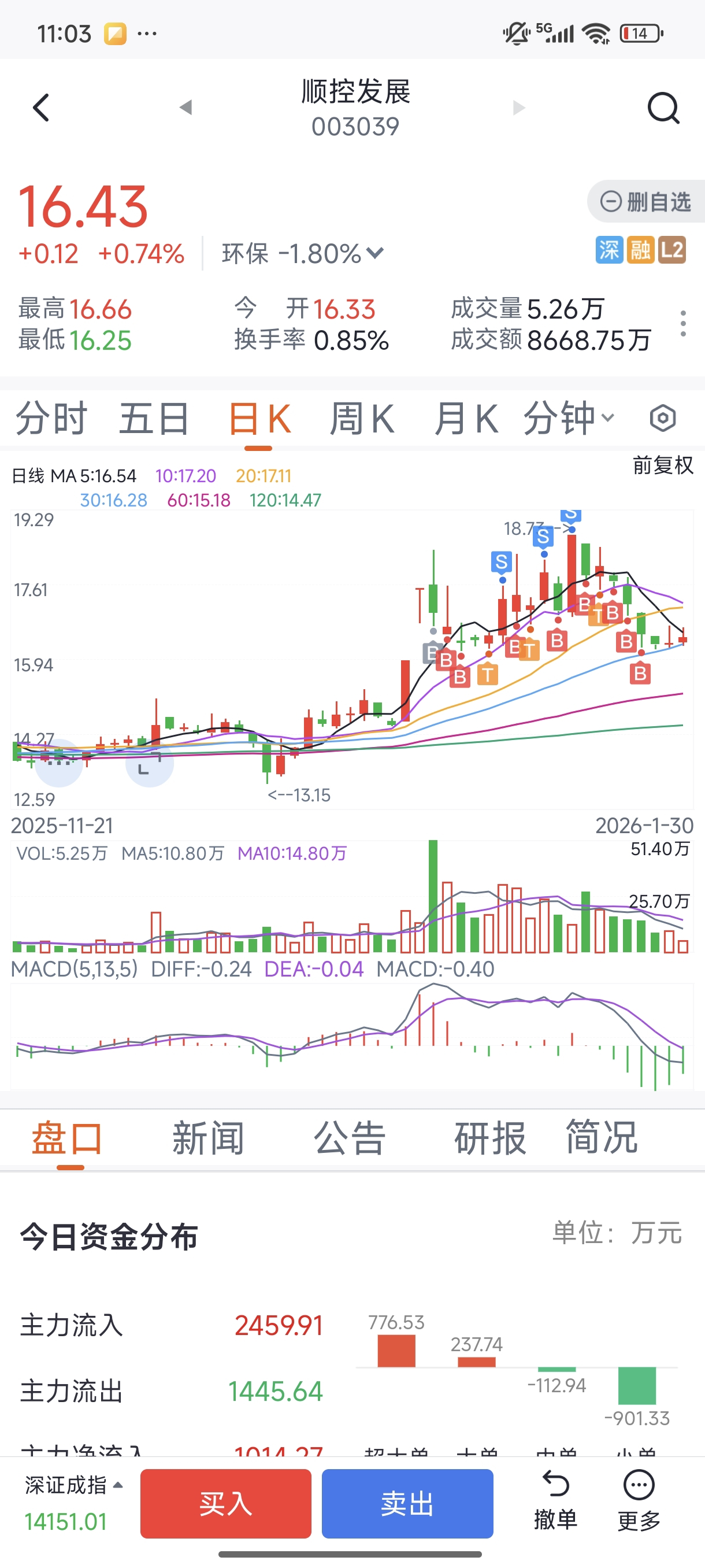 $顺控发展(SZ003039)$