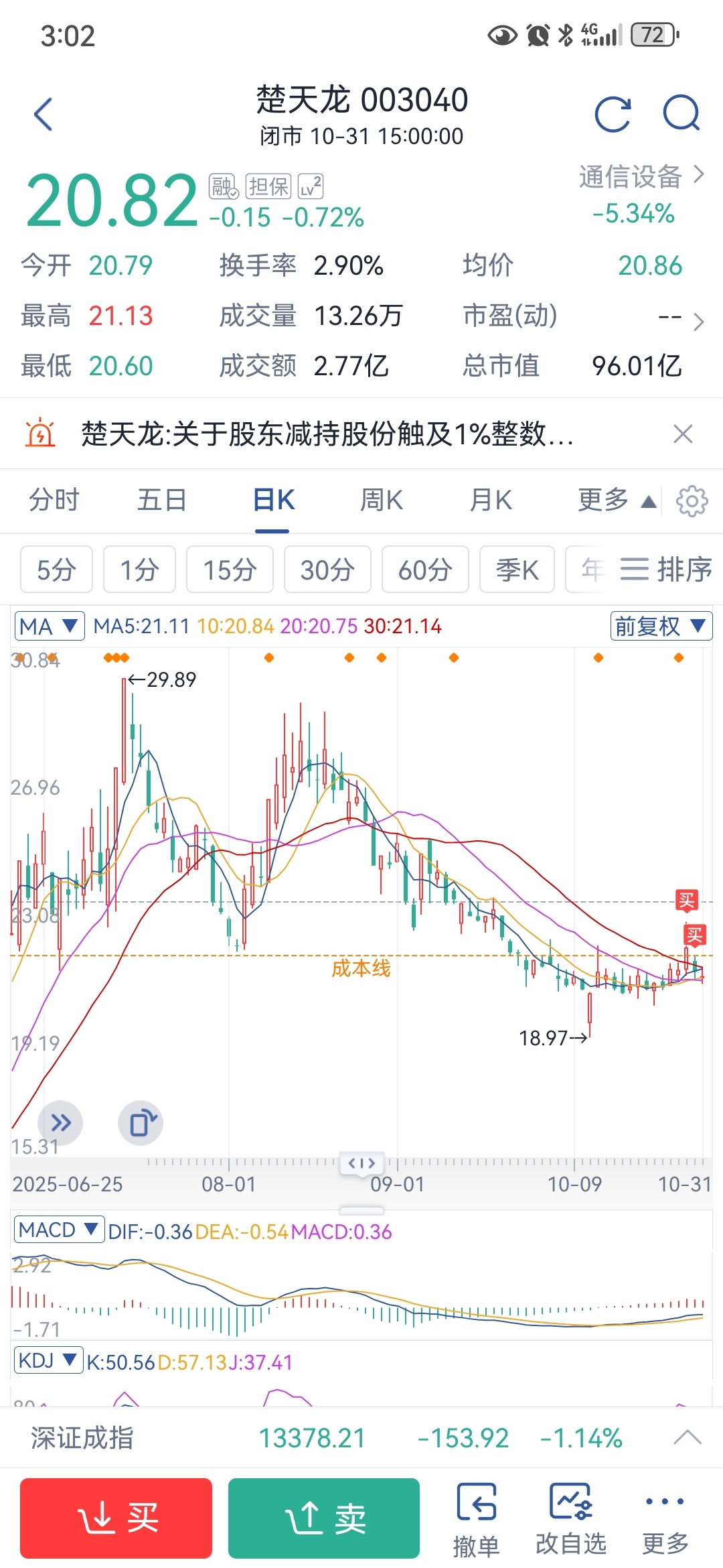 $楚天龙(SZ003040)$ 我也进来了哦,你越跌我越加,我们一起抢筹码。