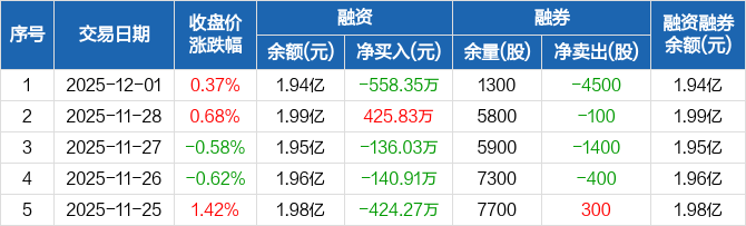 楚天龙:融资净偿还558.35万元,融资余额1.94亿元(12-01)