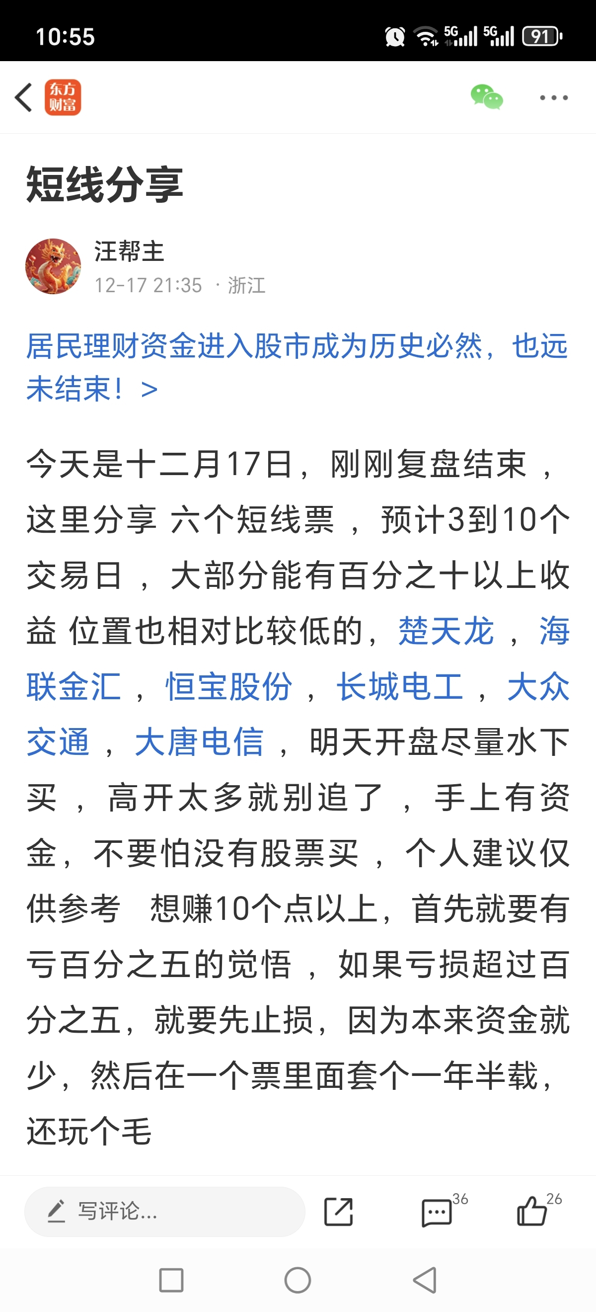 温馨提示: 1.根据《证券法》规定,禁止编造、传播虚假信息或者误导性信息,扰乱证券市场;2.用户在本社区发表的所有资料、言论等仅代表个人观点,与本网站立场无关,不对您构成任何投资建议。用户应基于自己的独立判断,自行决定证券投资并承担相应风险。《东方财富社区管理规定》
