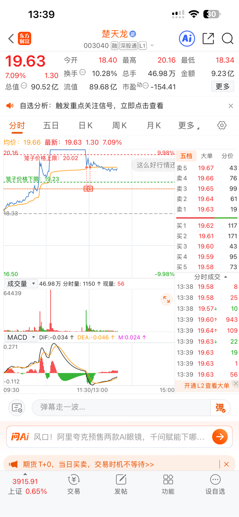 $楚天龙(SZ003040)$ 赌它能龙翔九天。。。