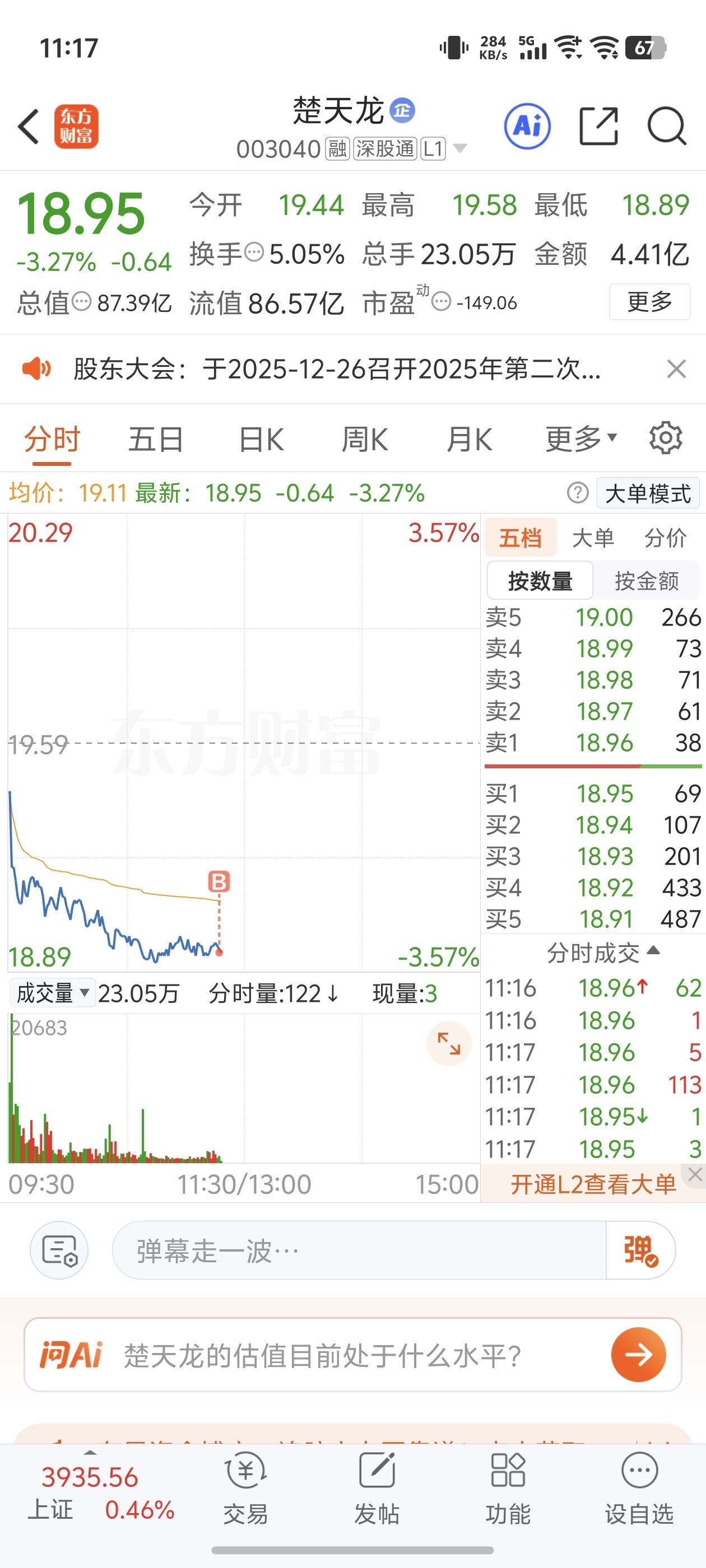 $楚天龙(SZ003040)$ 兄弟们,我已杀入,与你们生死与共