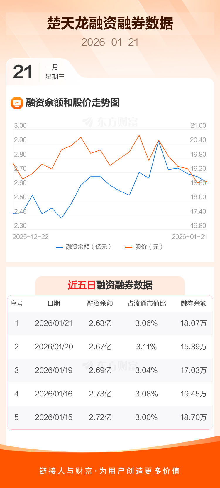 交易所最新数据显示,楚天龙于2026年1月21日获融资买入791.24万元,融资偿还1138.87万元,当日融资净偿还347.63万元。目前,该股融资余额2.63亿,占流通市值比例为3.06%。