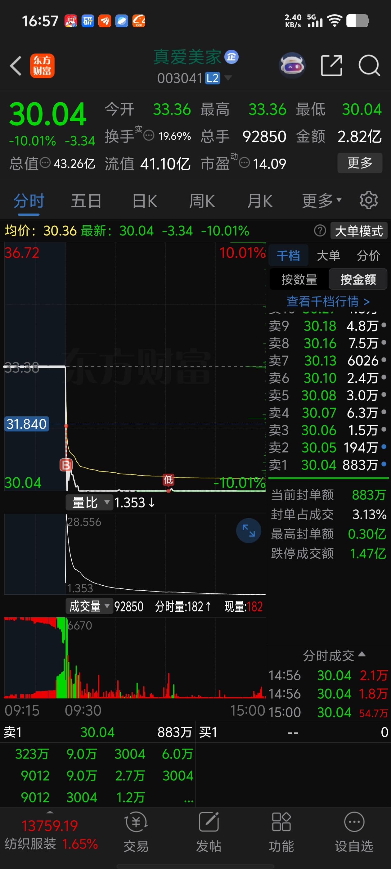 $真爱美家(SZ003041)$ 我发誓,今天这个不是我买的,是昨天设的低于32块买,结果…