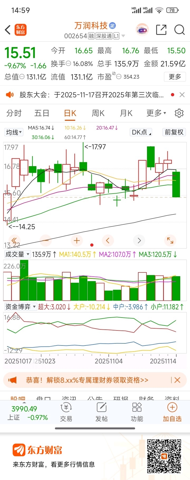 突发可以,涨价潮来袭,这个002654,三星电子将对应芯片涨价50%,美股存储芯片暴涨,万润科技(SZ002654)和 雄韬股份(SZ002733) 有补涨需求,叠加002654有军工抗日概念,周一会高开秒板吗?N字形反包涨停板,筹码高度集中,会不会有什么小行情呢?