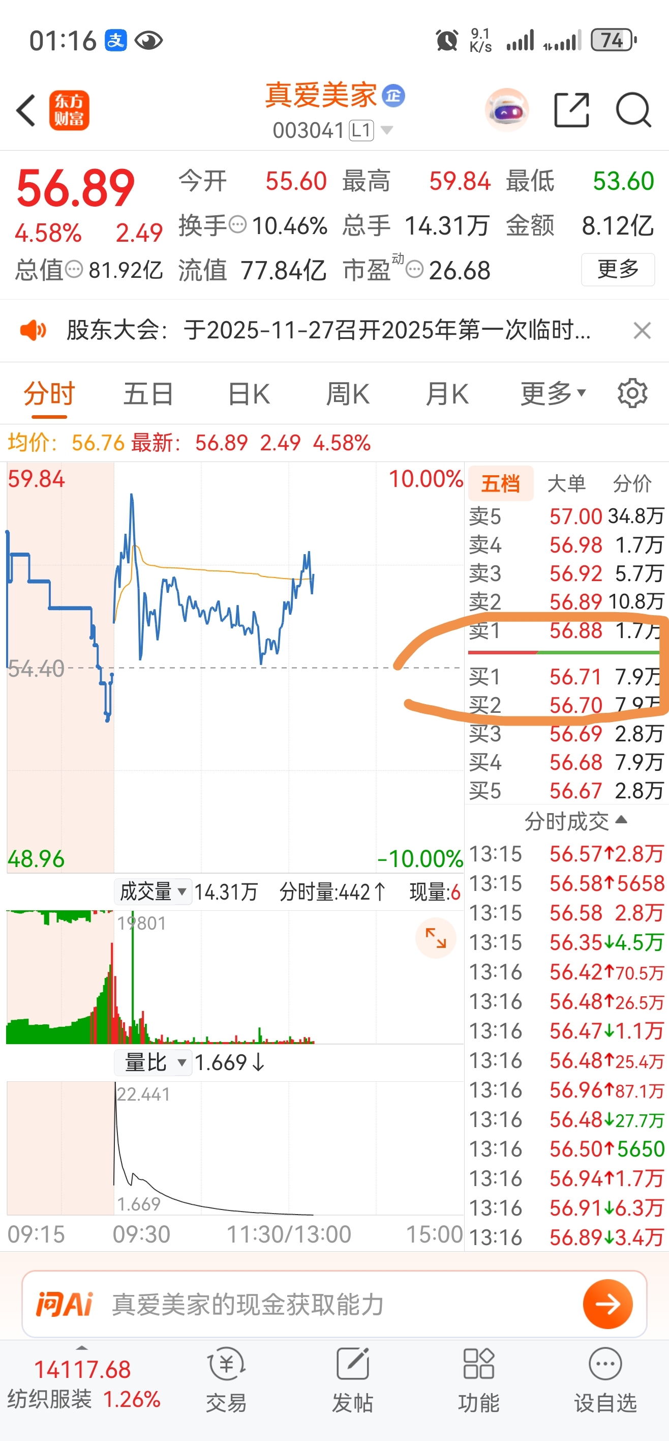 $真爱美家(SZ003041)$ 买卖价格为啥差这么多