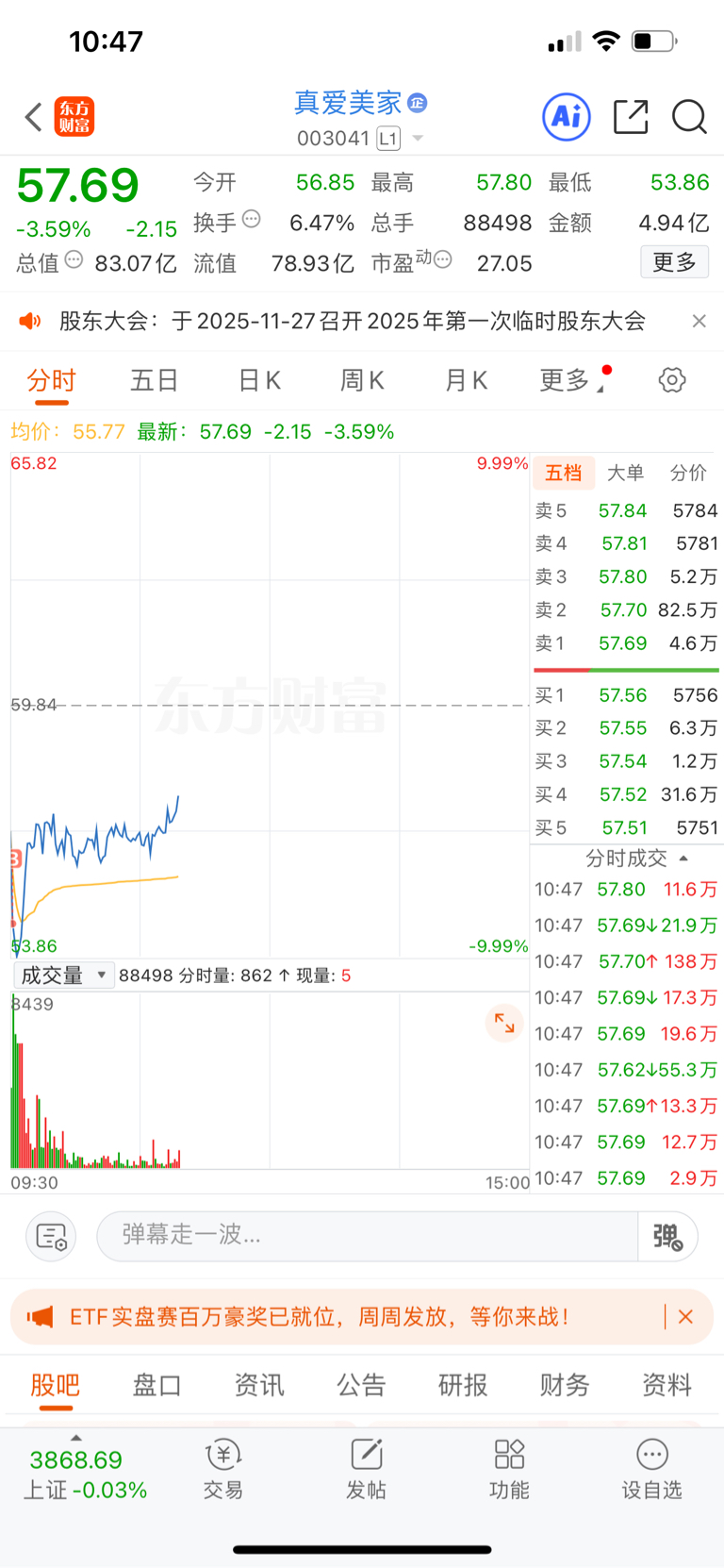 $真爱美家(SZ003041)$ 突破新高了家人们!