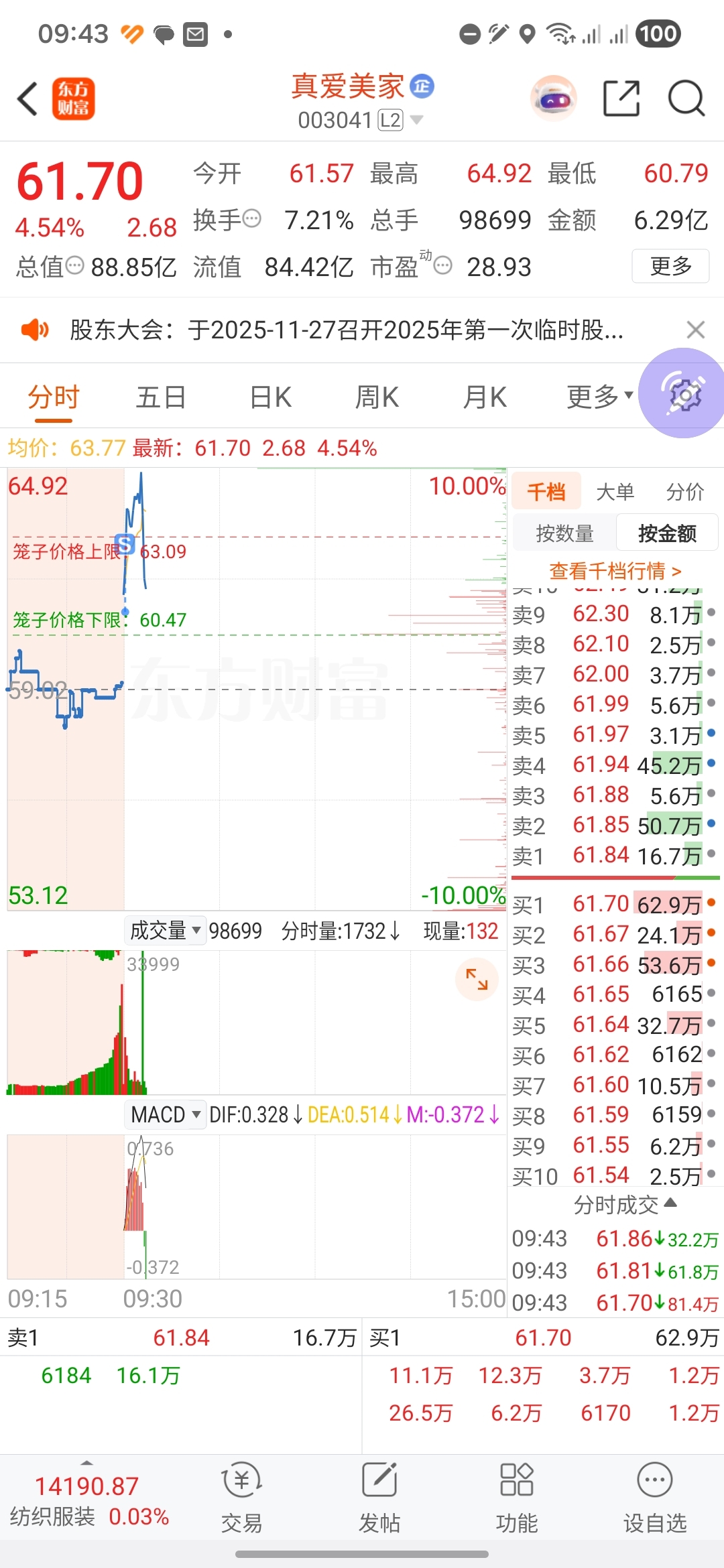 $真爱美家(SZ003041)$ 没卖好,加了国晟,另外换了天际。直接下班。