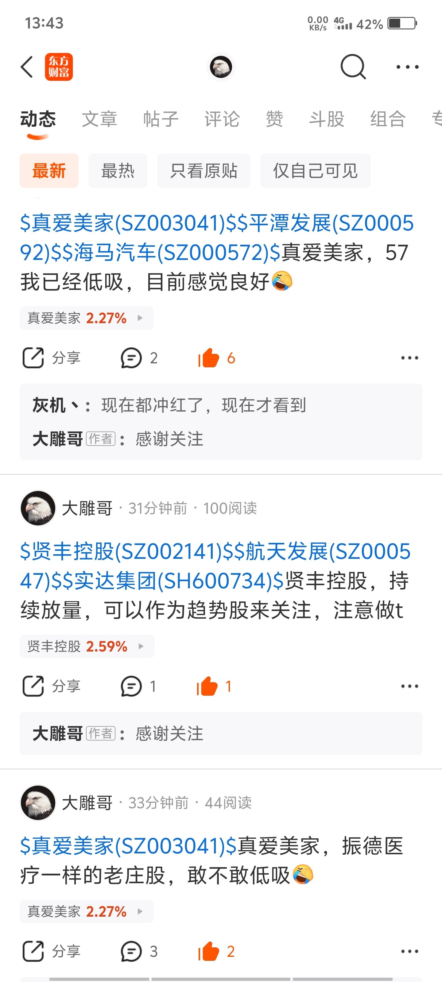 $真爱美家(SZ003041)$ $实达集团(SH600734)$ $航天发展(SZ000547)$ 我已经低吸,目前感觉良好