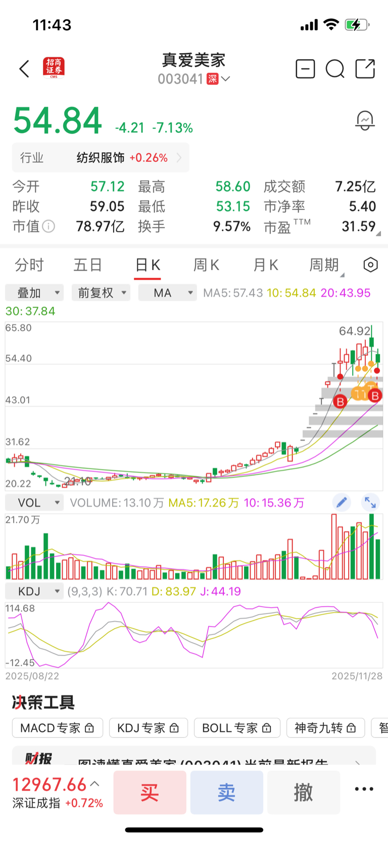 $真爱美家(SZ003041)$ 每天高抛低吸也可以,虽然没卖到最高点也没买在最低点,这股确实折磨人,所以坚信看多,不磨一磨,怎能见彩虹