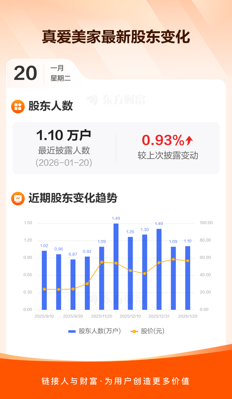 真爱美家:截至1月20日最新股东户数1.10万户,较上期增加0.93%