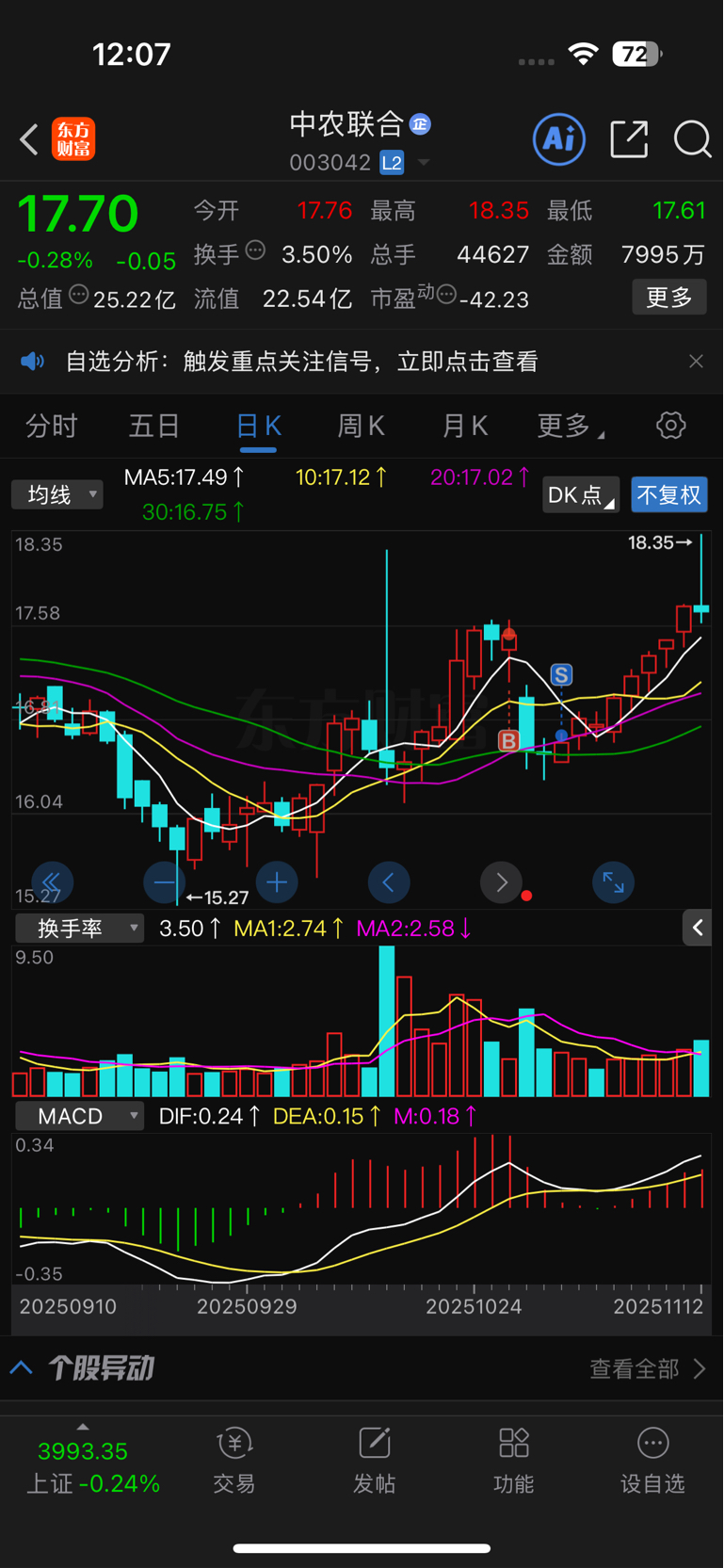 $中农联合(SZ003042)$ 买进来吃了一个憋