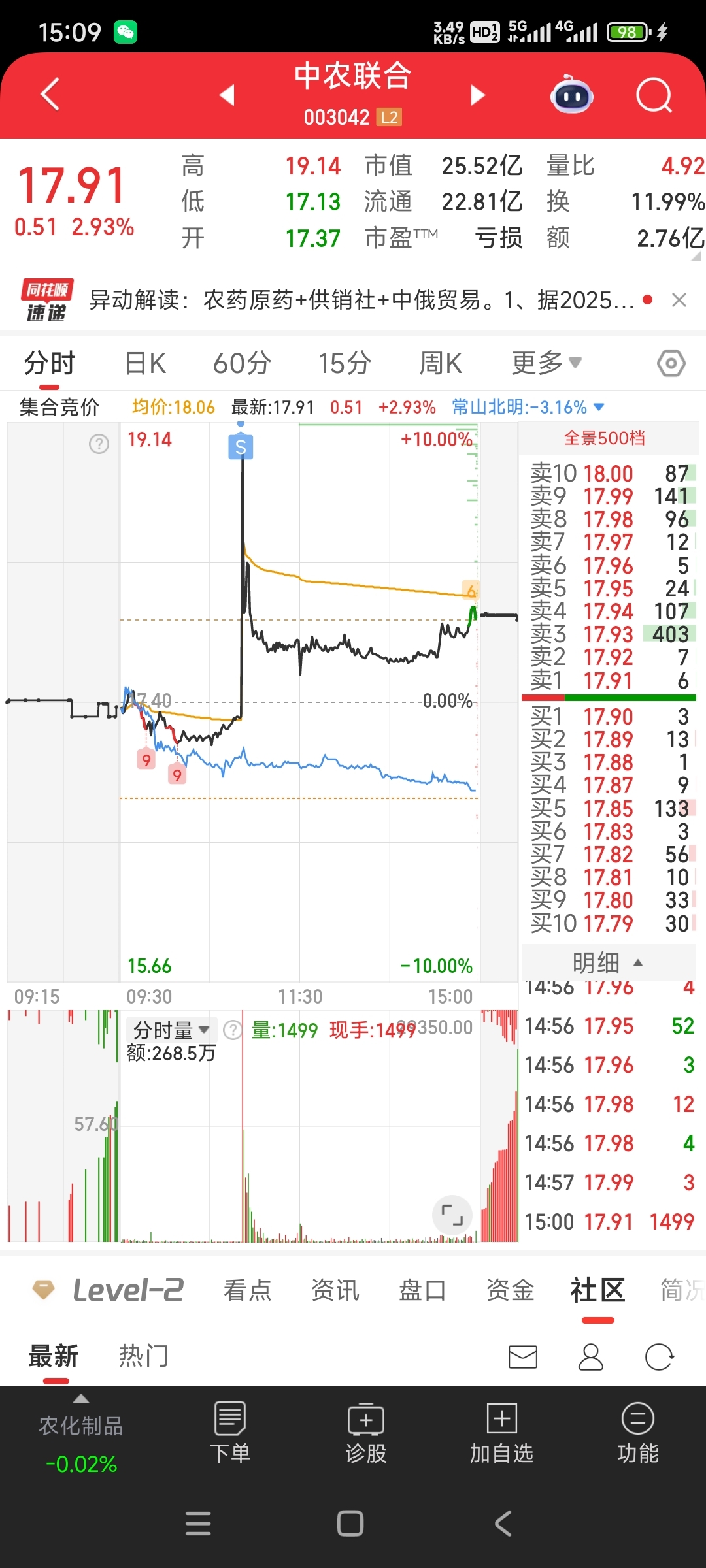 $中农联合(SZ003042)$ 上次18.22都搞过一次,这次先挂涨停总算抓住了机会