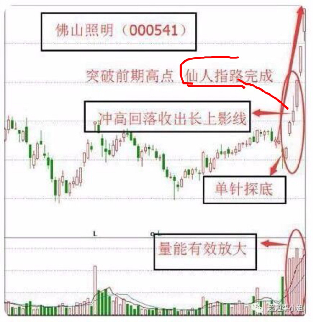2、仙人指路形态出现在阶段性底部中期、拉升阶段初期和拉升波段中期。
