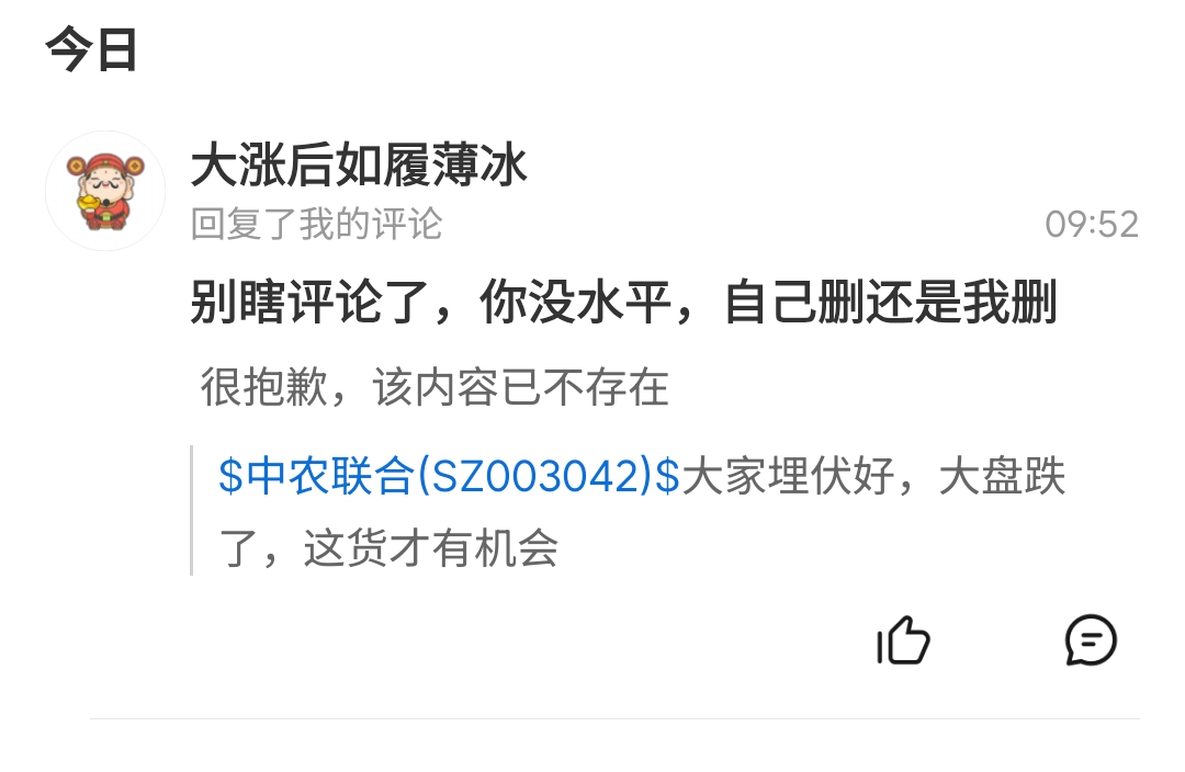 $中农联合(SZ003042)$ 看到这个哥们的评论我也是笑了,我是没水平,几十手我反正就赚个几毛钱的差价,一次赚两条华子够了,不奢望你动不动就搞涨停的。大盘你没看出来在刷连阳记录吗,破了记录再说往下走的事情吧