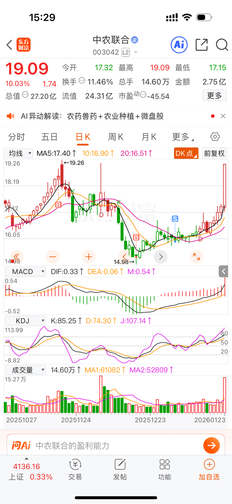 $中农联合(SZ003042)$ 吗的割肉走了、昨天还想着今天看下买回来结果忘记了在一看涨停了