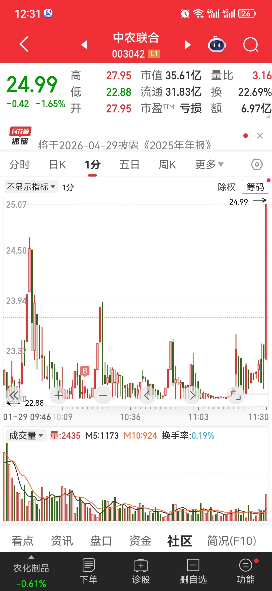 $中农联合(SZ003042)$ 意外给个地天呢