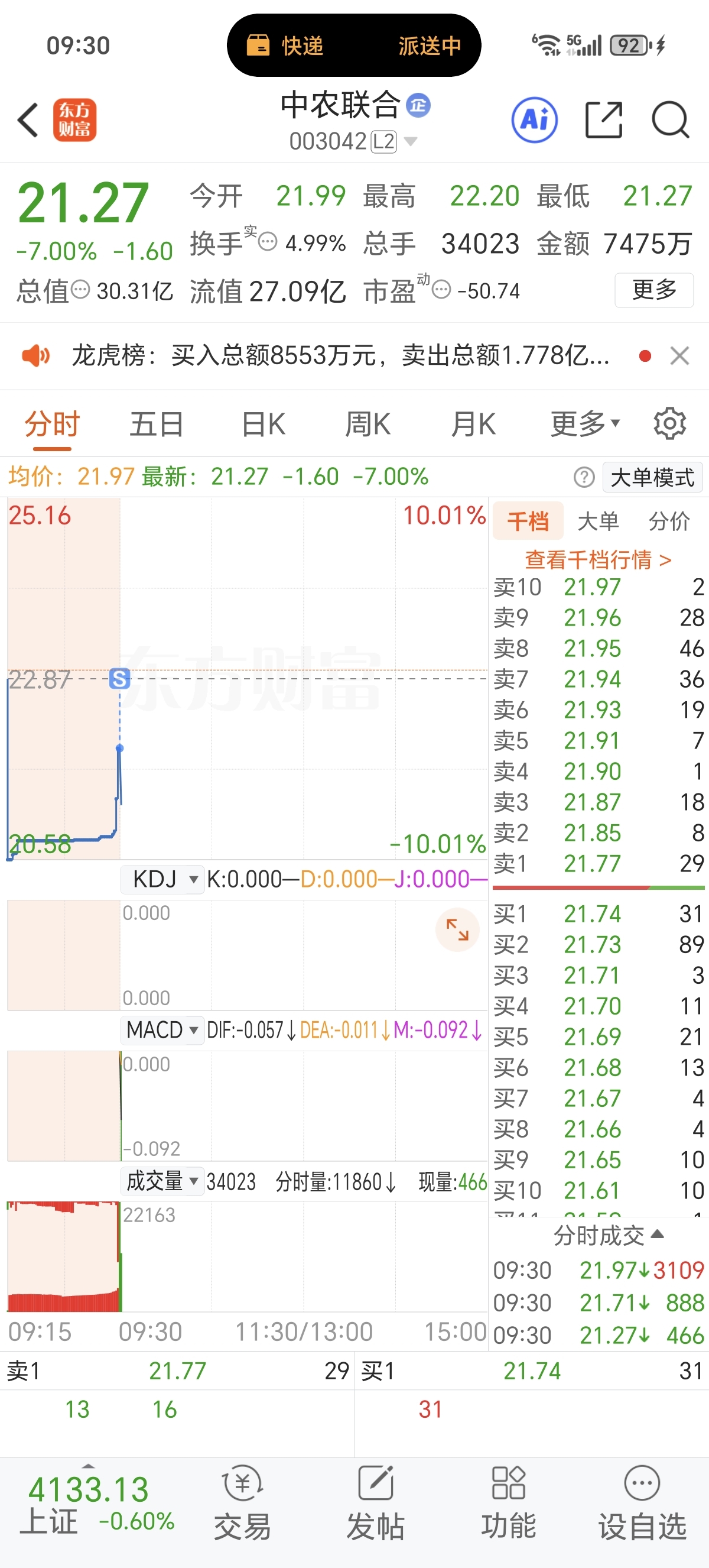 $中农联合(SZ003042)$ 虽然昨天跌停板买的不多,但是这个出来,我感觉挣了一个亿
