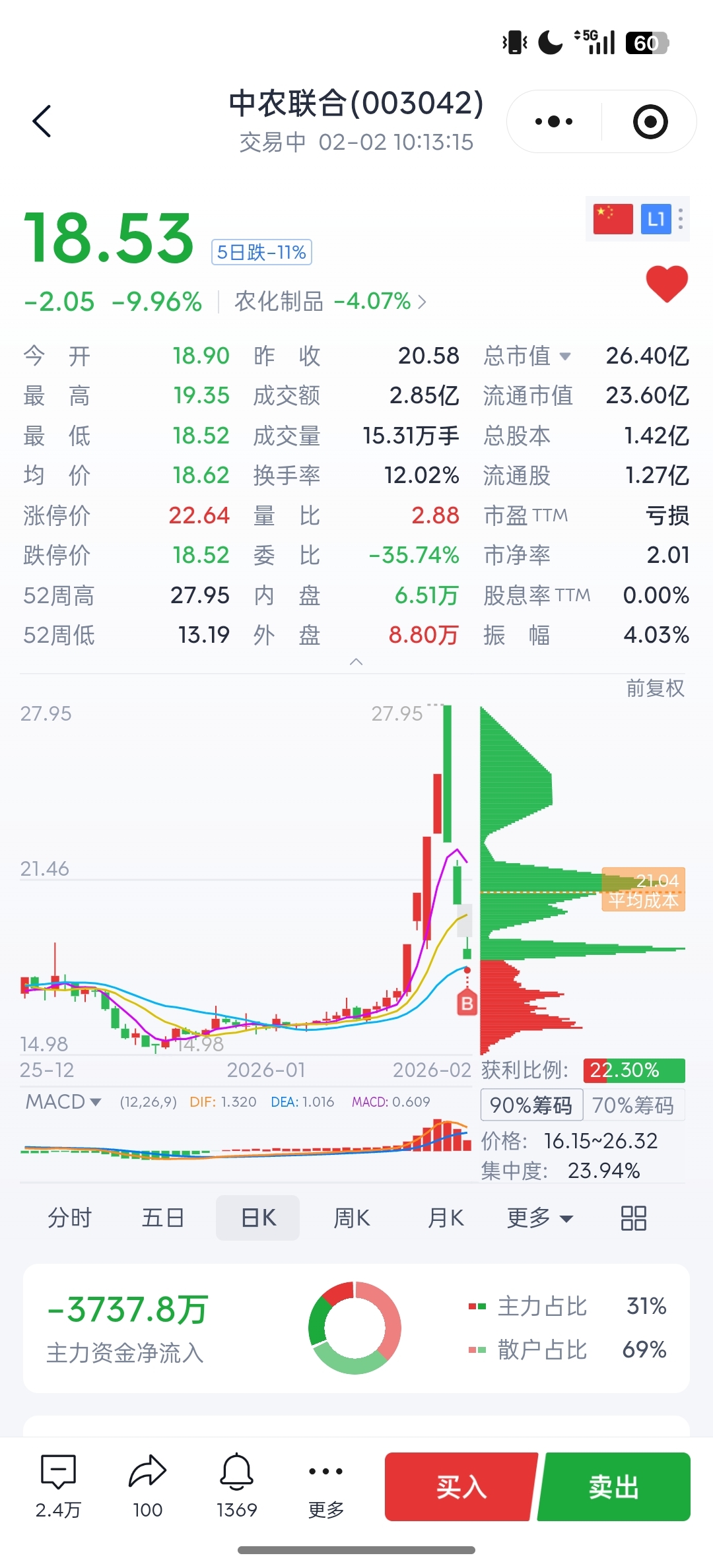 $中农联合(SZ003042)$ 帮兄弟姐妹们撬板。
