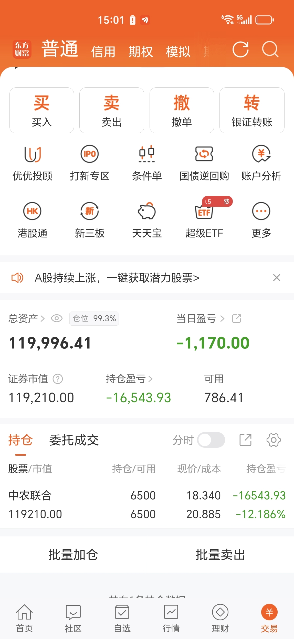 $中农联合(SZ003042)$ 2月3日继续记录自己继续拿住仅供参考以下图,总资产11万9千9百元左右。
