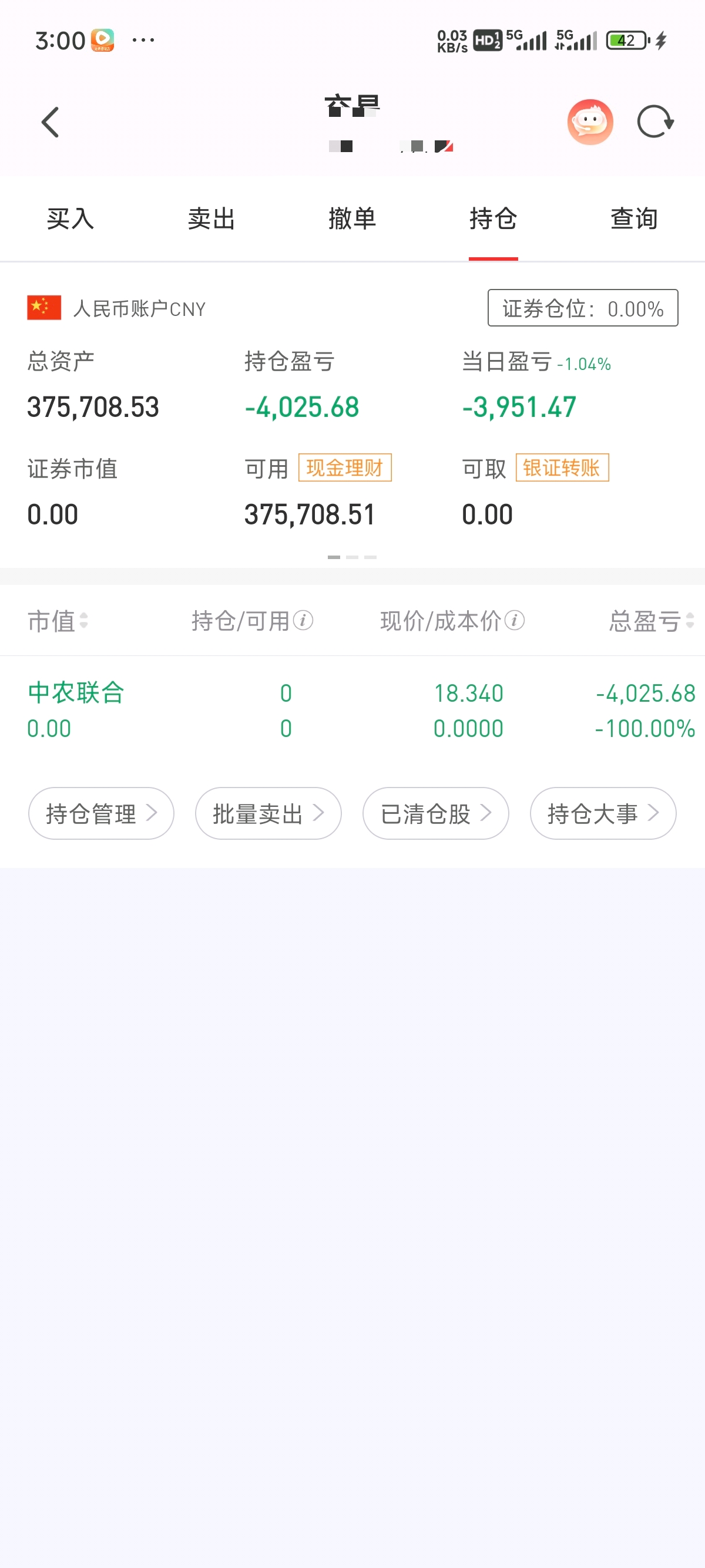 $中农联合(SZ003042)$ 才亏了4000块,一个个叫什么,我自己的钱,你们操心什么
