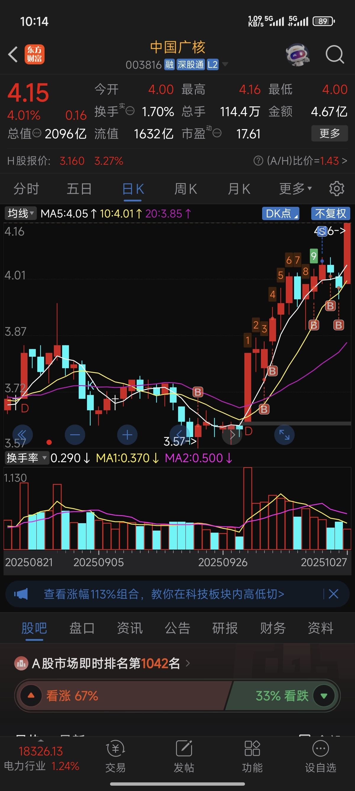 $中国广核(SZ003816)$ 子弹太少了,手里都是潜力股,啊啊啊才加到9千多,果然好股买不完,买不完啊啊啊,