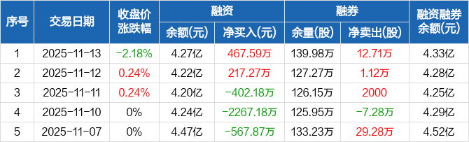 中国广核:融资净买入467.59万元,融资余额4.27亿元(11-13)