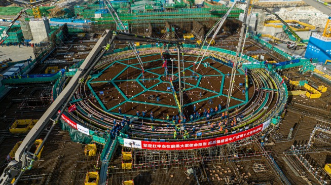 央广网北京11月18日消息(记者齐智颖)我国首个配置冷却塔的“华龙一号”核电机组——中广核山东招远核电项目1号机组顺利完成核岛第一罐混凝土浇筑,标志着该项目一期工程建设全面启动。据了解,项目全部机组建成后,预计年发电量达500亿千瓦时,可满足约500万人口的年生产生活用电需求,等效每年减少标准煤消耗约1527万吨、减排二氧化碳约4620万吨,环保效益相当于植树造林超11万公顷。