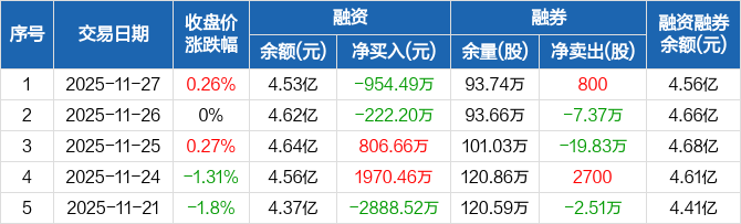 中国广核:融资净偿还954.49万元,融资余额4.53亿元(11-27)