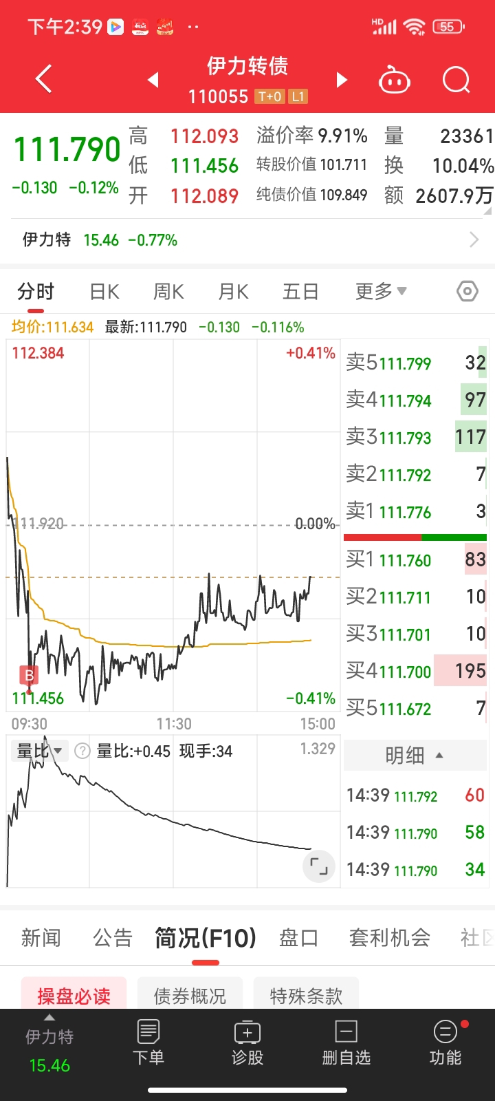 $伊力转债(SH110055)$ 筹码拿到手,大股东看着办,不给我拉到120以上就等着还钱吧