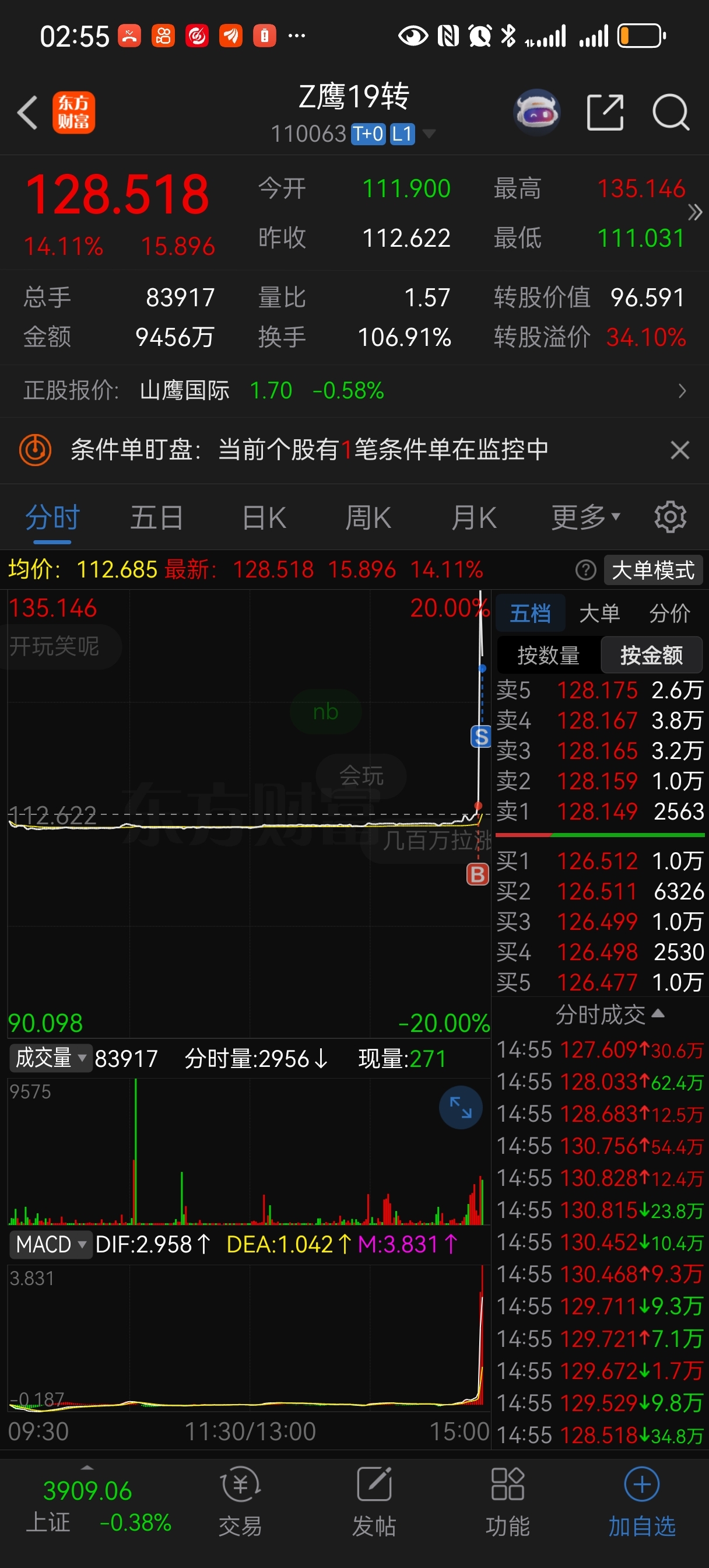 $Z鹰19转(SH110063)$ 什么情况,涨停都来不及抛就下来了。