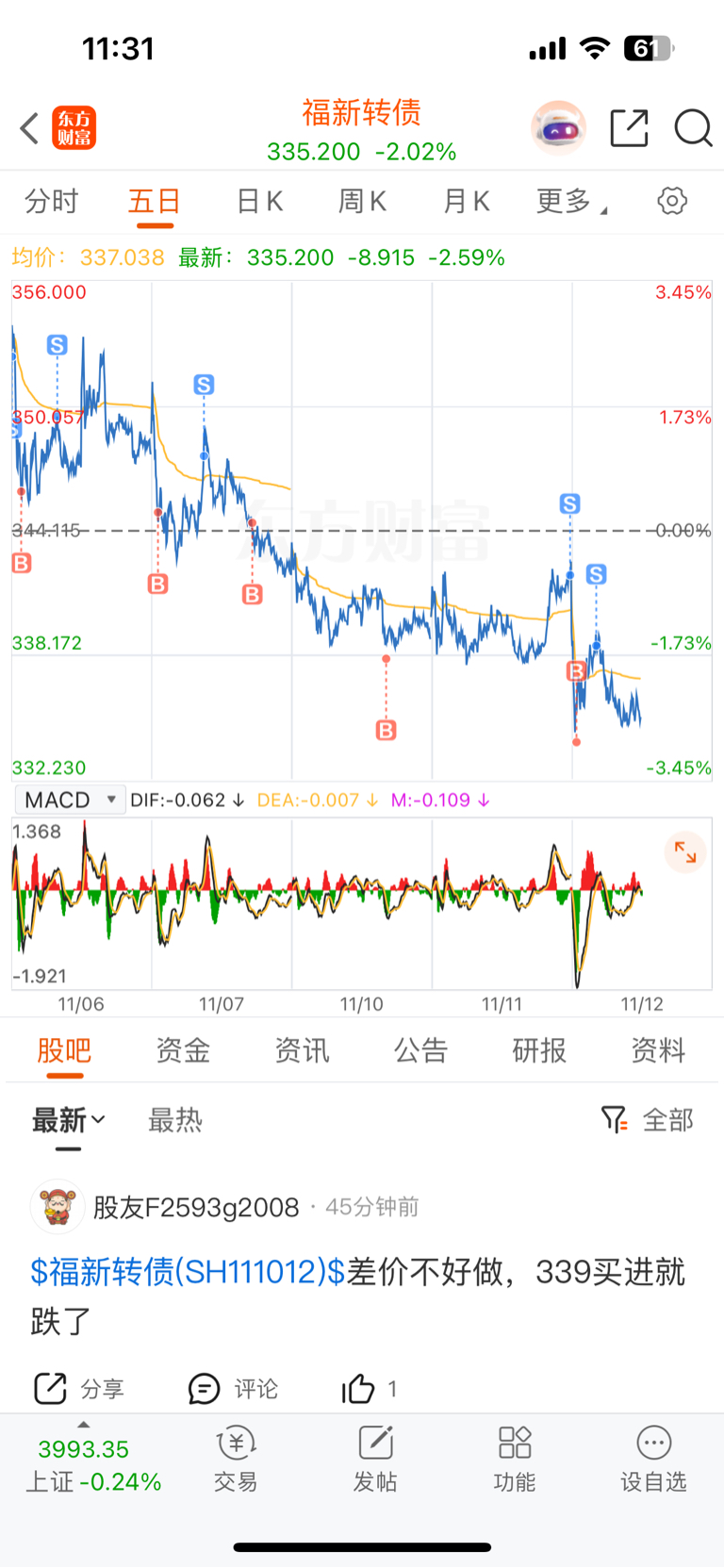 $福新转债(SH111012)$ 做t赶不上你跌啊