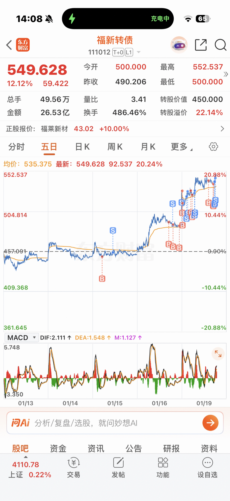 $福新转债(SH111012)$ 没缘分,只能赚小钱