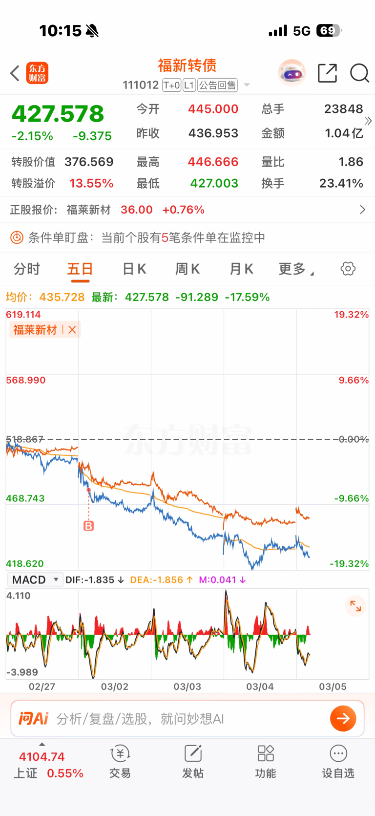 $福新转债(SH111012)$ 前几天我朋友让我提前止损,不舍得,当时亏十几个点,现在亏30%了