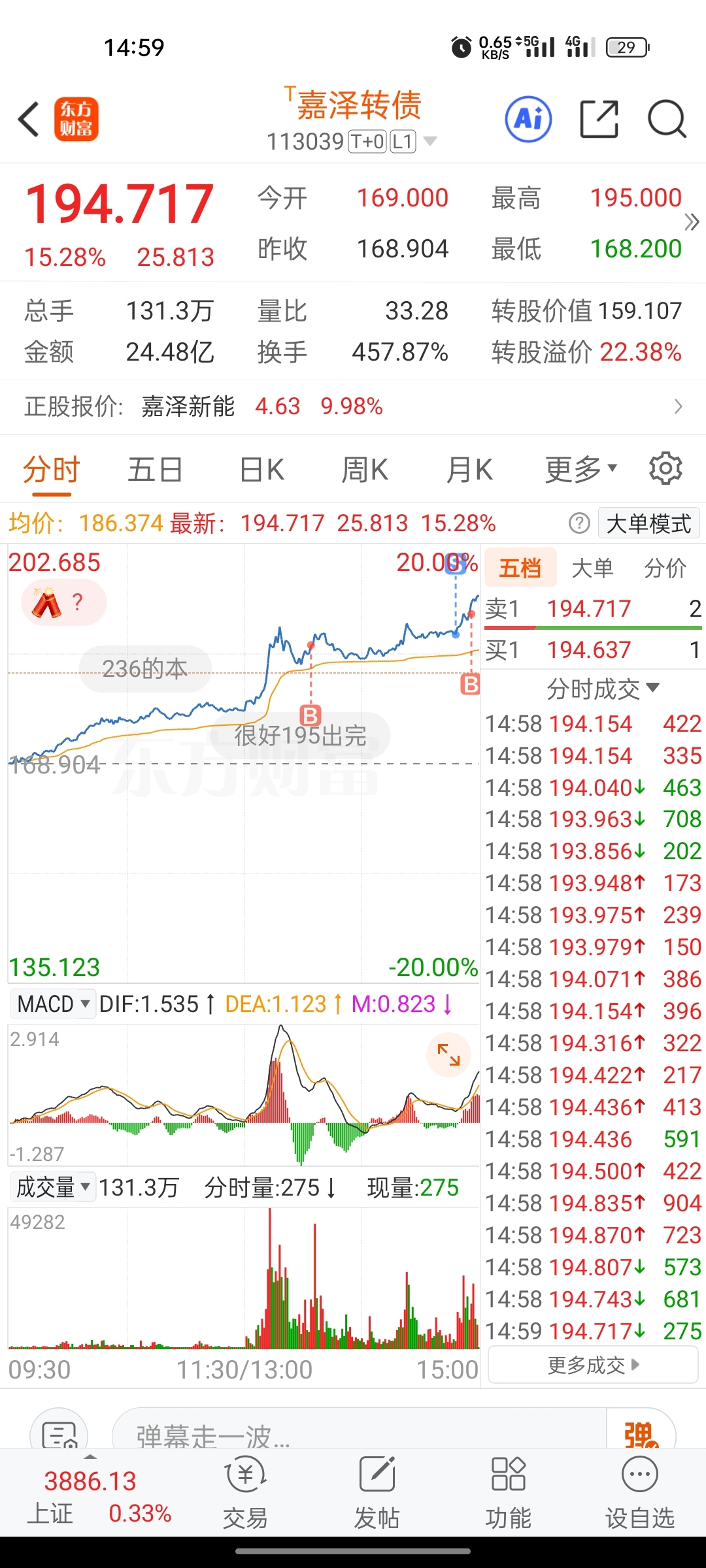 $嘉泽转债(SH113039)$ 还想着尾盘会杀一点再接,结果最后几分钟还越拉越高,看来都在抢筹,哎,等周一了