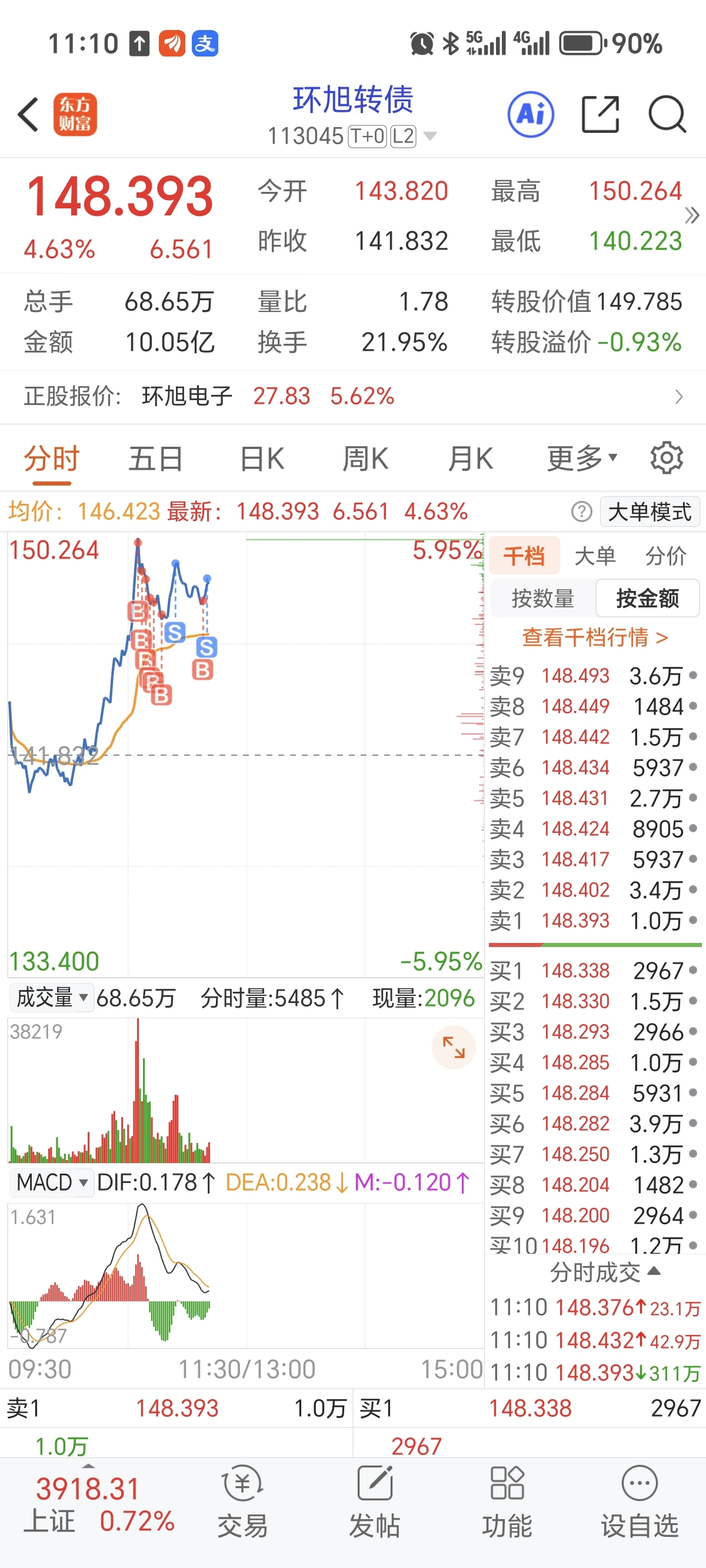 $环旭转债(SH113045)$ 玩转债高位追每次都是被套,还就是作死每次都追