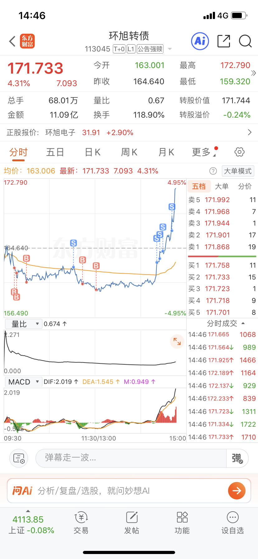 $环旭转债(SH113045)$ 明天别涨了,我卖完了