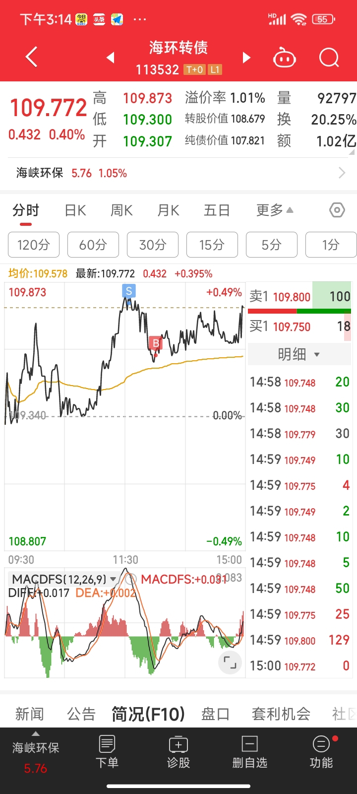 $海环转债(SH113532)$ 最高点出,回调到最低点进,零风险套利