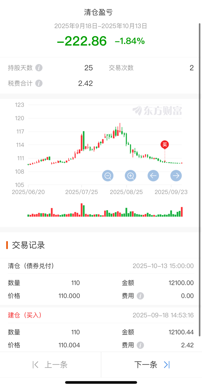 $金能转债(SH113545)$ 为什么会亏损222.86呢