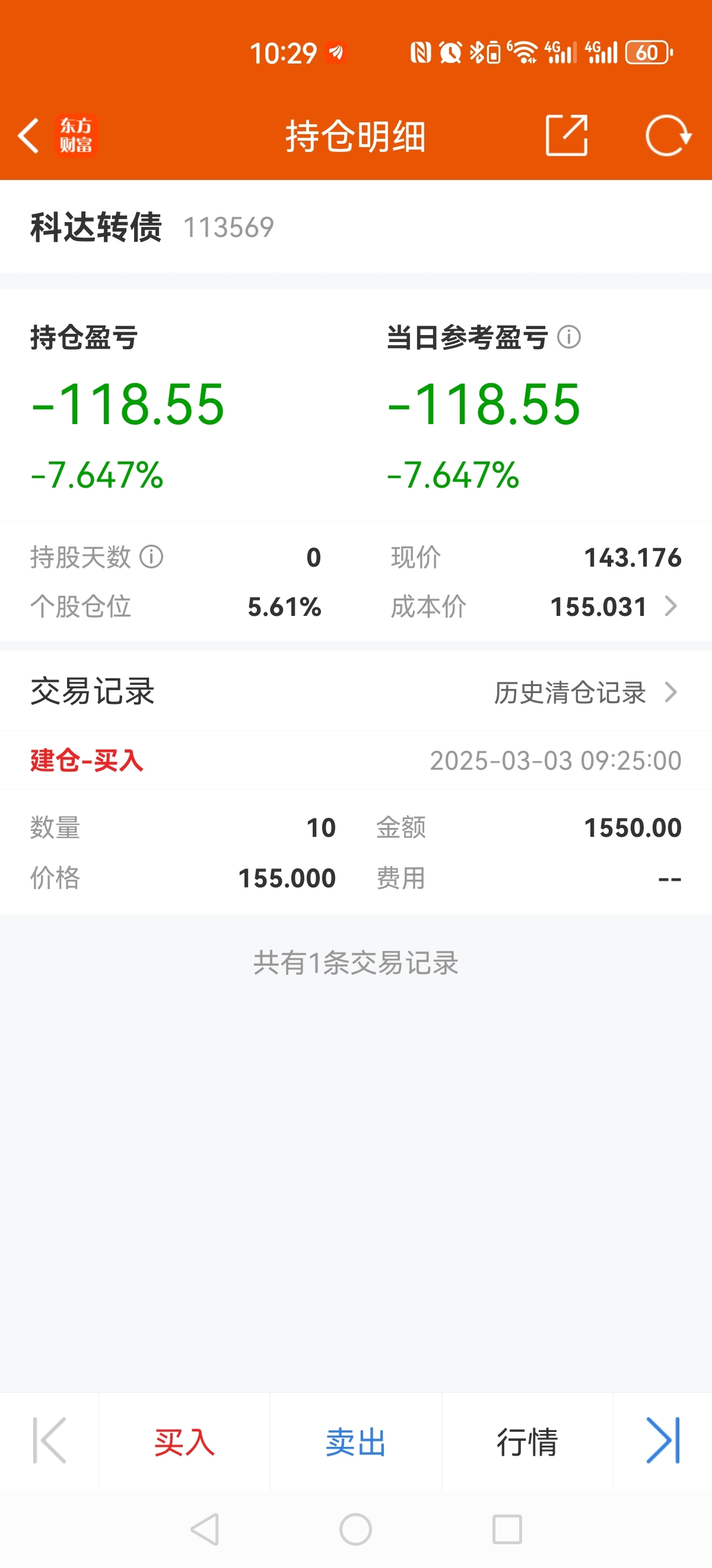 $科达转债(SH113569)$ 竞价一手 都不带一点涨得